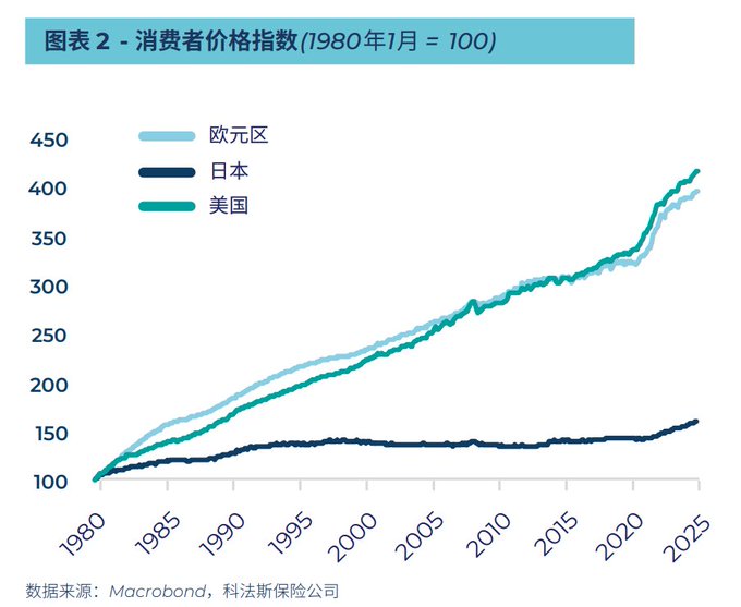 2、美日欧1980年以来的消费者价格指数(通胀衡量指标)。 2020年后,CPI加速变毛...