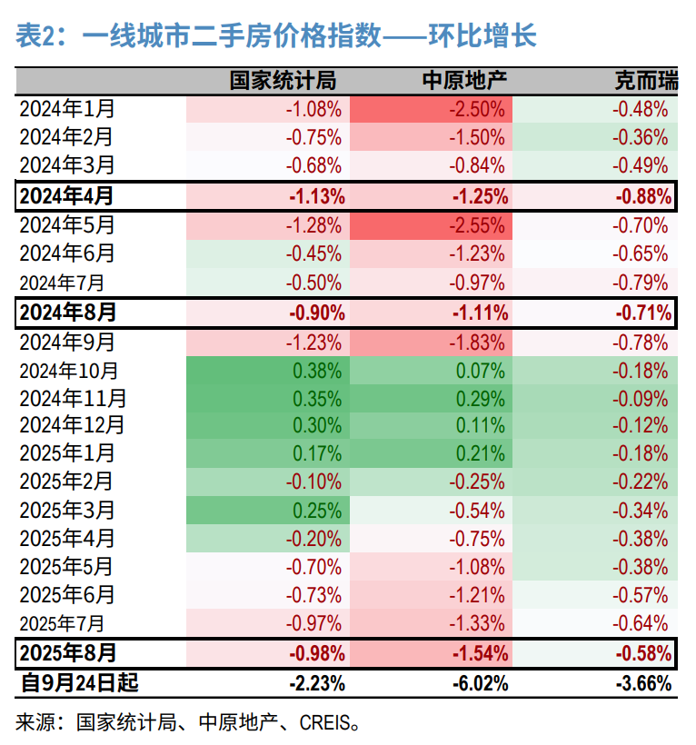 4、一线城市房价环比数据