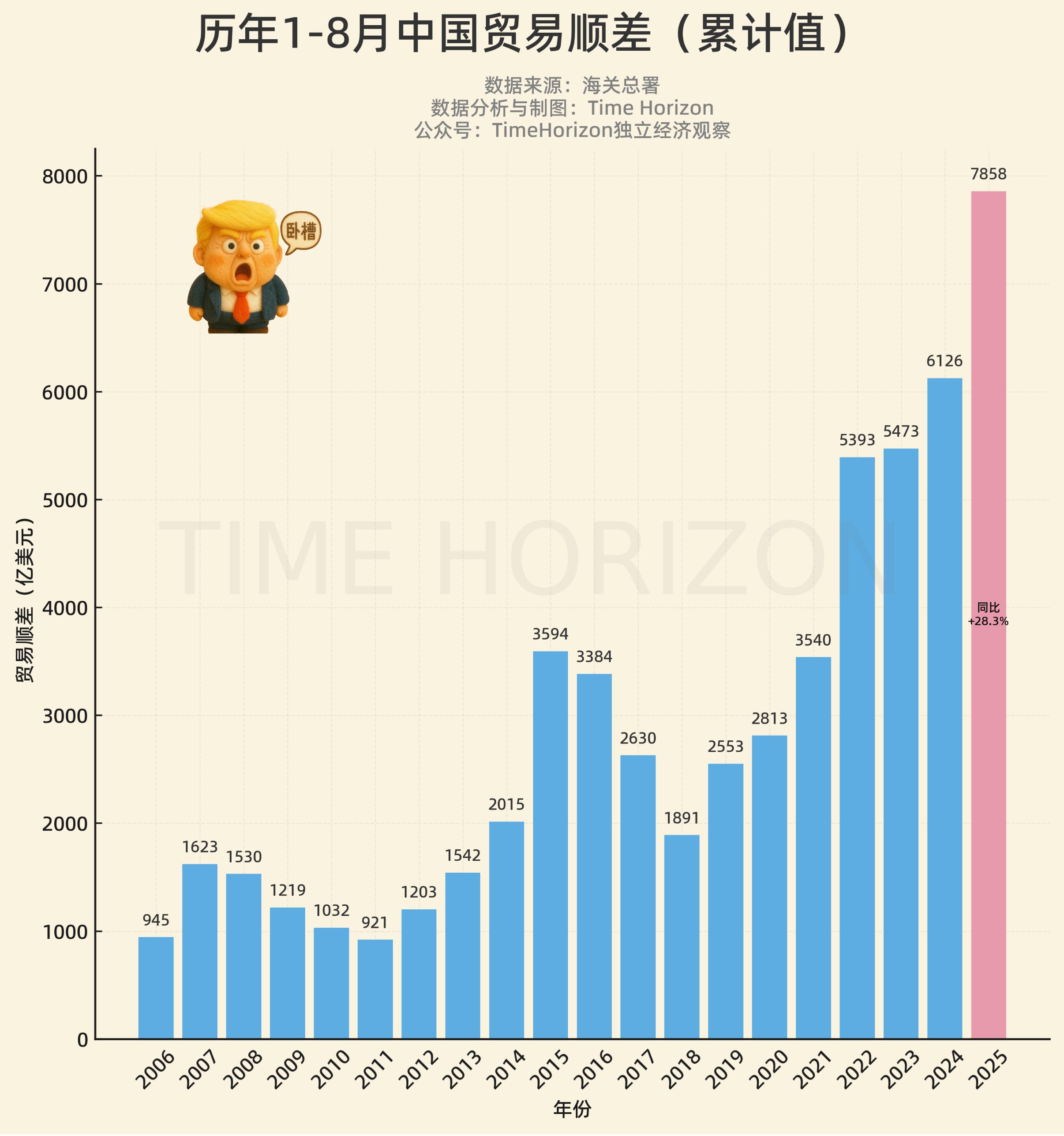 7、历年贸易顺差(累计值):居民并没分到多少